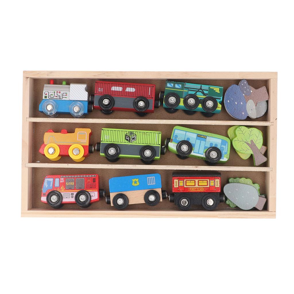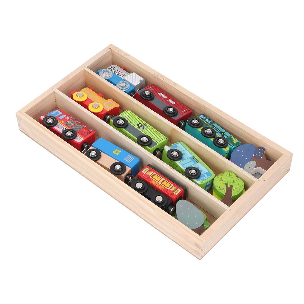 Деревянный набор поездов, безопасный для детей, красочный, легкий, деревянный игрушечный набор поездов с коробкой для демонстрации
