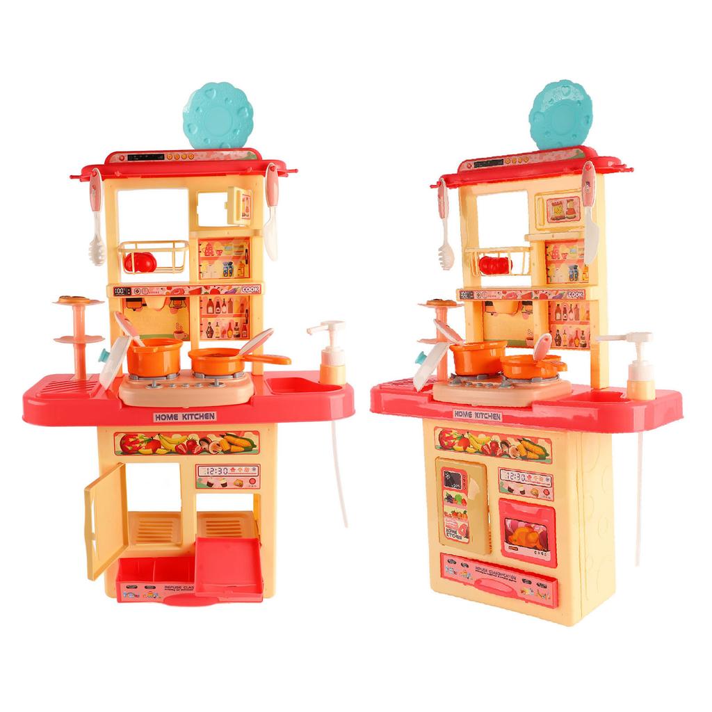 Kids Kitchen Playset Realistic Sound Light Spray Sink Role Play Kitchen Toys Pink for 3 to 8 Years