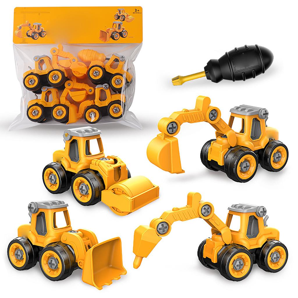 Наборы строительной техники для малышей Симуляция Включают 4 транспортных средства Пазл Детская разборная игрушечная машинка