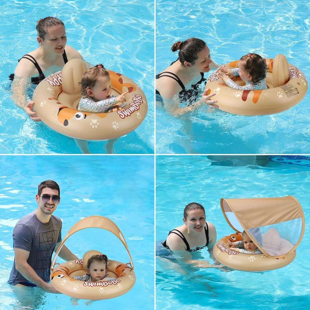 Детский съемный ножной насос для детей от 6 месяцев до 3 лет, в комплекте поплавок, солнцезащитный крем SPF50+, козырек от солнца, ванна, для детей, коврик, сейф, - дети, (бежевый)