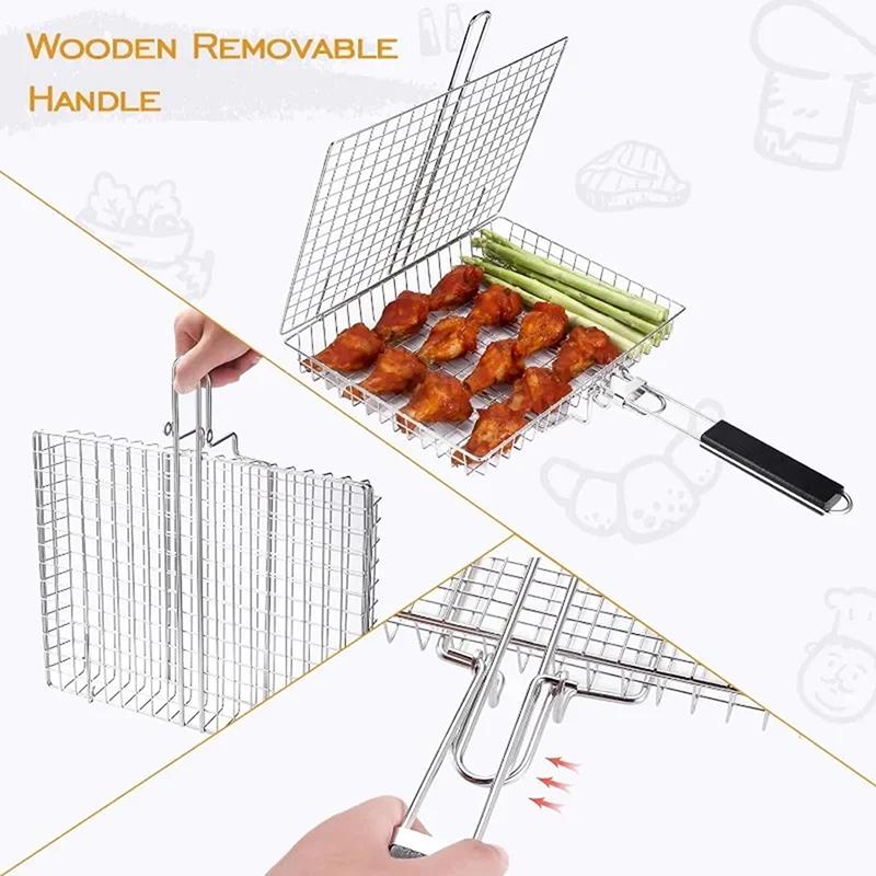 Корзина для гриля из нержавеющей стали, большие складные корзины для гриля, переносная стойка для барбекю на открытом воздухе для кемпинга и приготовления принадлежностей
