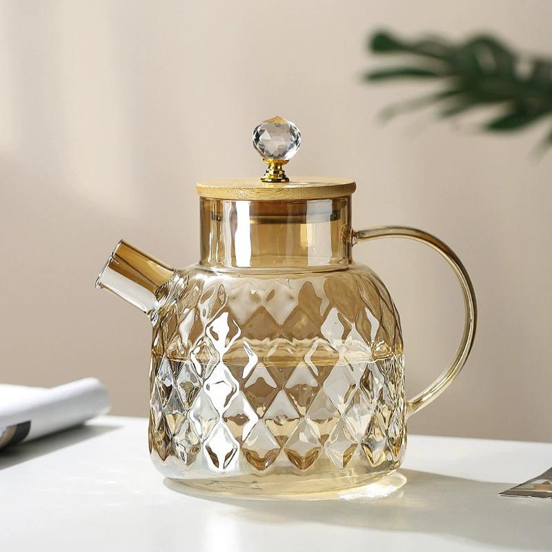 Стеклянный чайник с бамбуковой крышкой и съемным фильтром-носиком, заварной чайник для рассыпного листового чая и фруктового чая 1/15/1,8 л