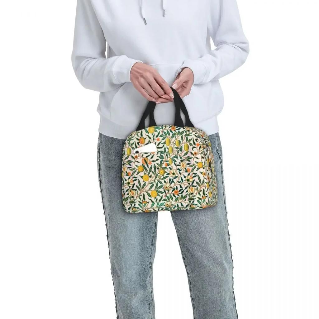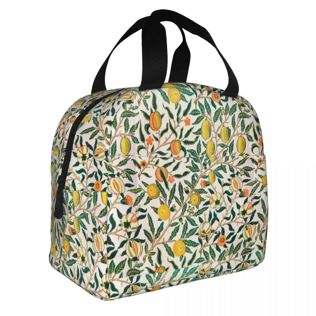 Уильям Моррис Фрукты Изолированные Сумки для Ланча Цветочный Зеленый Растение Богемный Цветок Контейнер для Еды Сумка-Холодильник Сумка-Тоут Ланч-Бокс Сумка для Еды