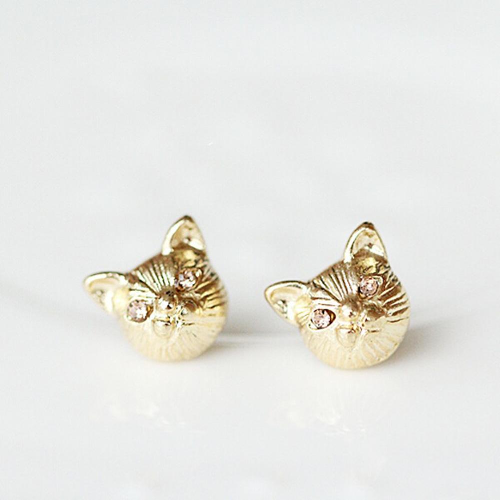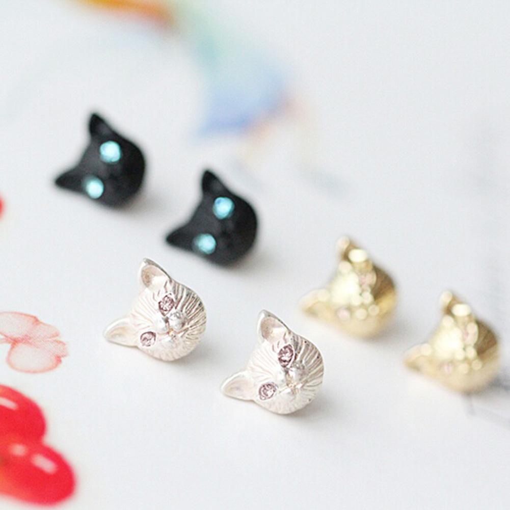 Милые серьги-гвоздики в виде кошки, модный дизайн, 3 цвета, пара сережек-гвоздиков в виде кошки