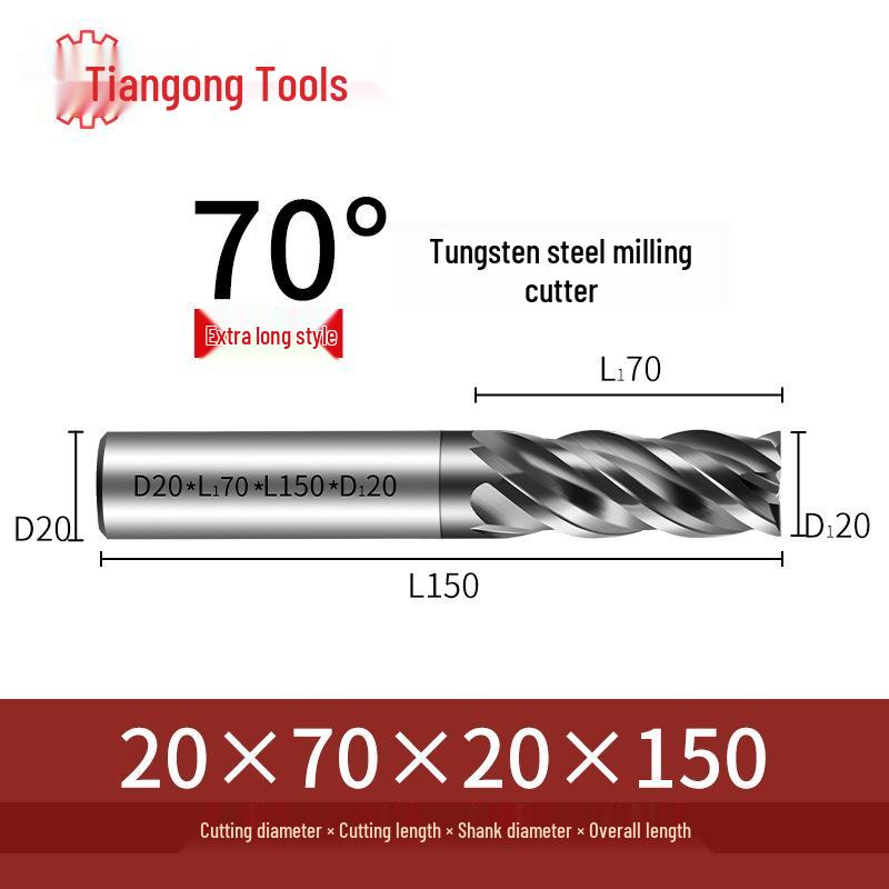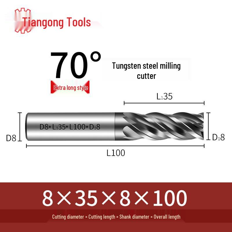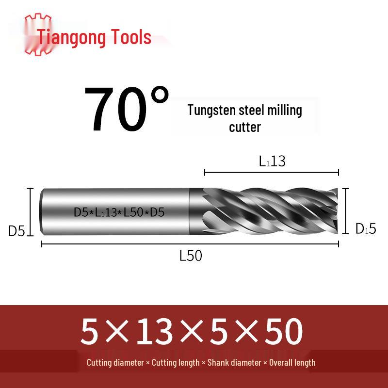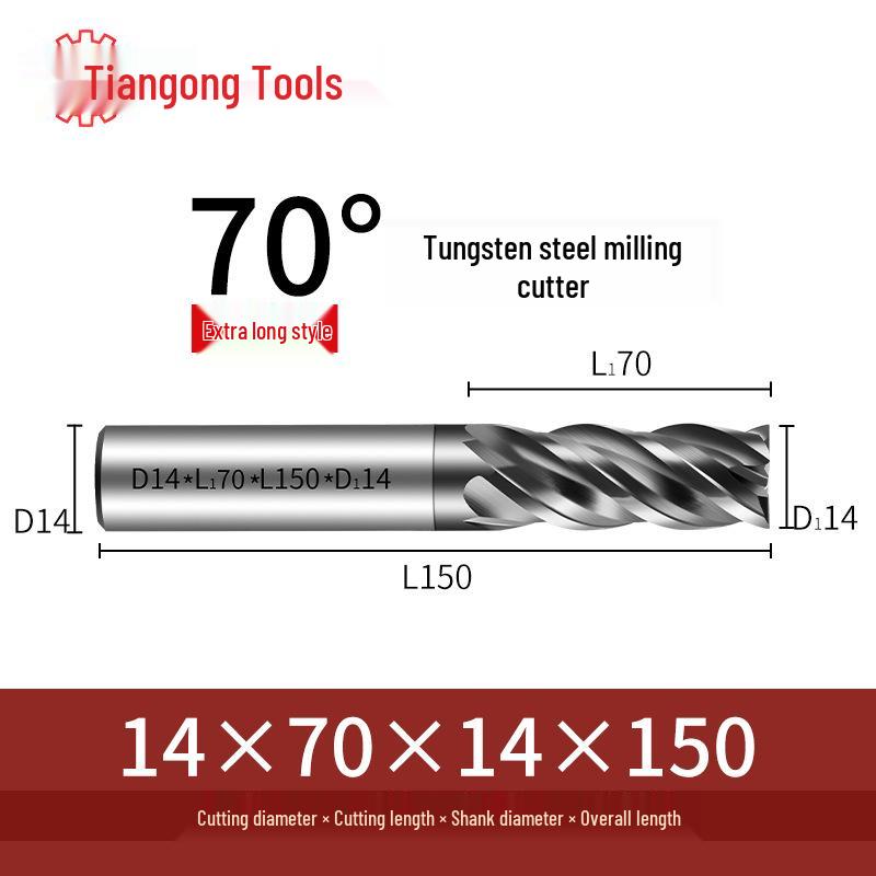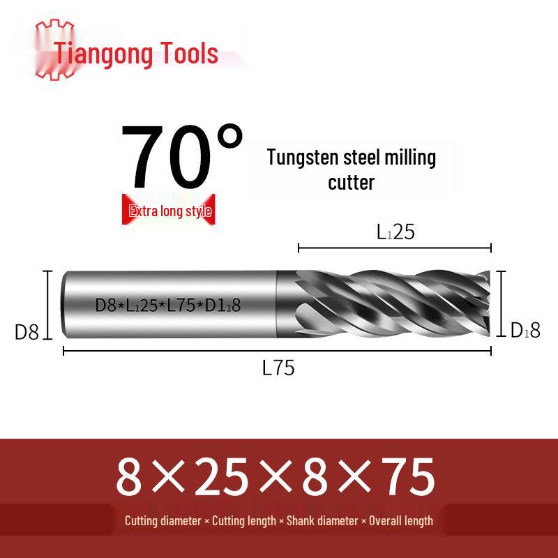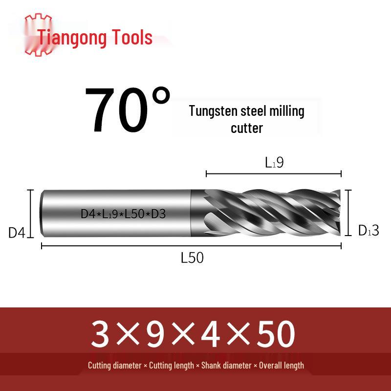 Tiangong 70° Твердосплавная концевая фреза с ЧПУ: Высокоточная, Виброустойчивая, Плоское дно, Четырехлезвийная фреза для нержавеющей стали.