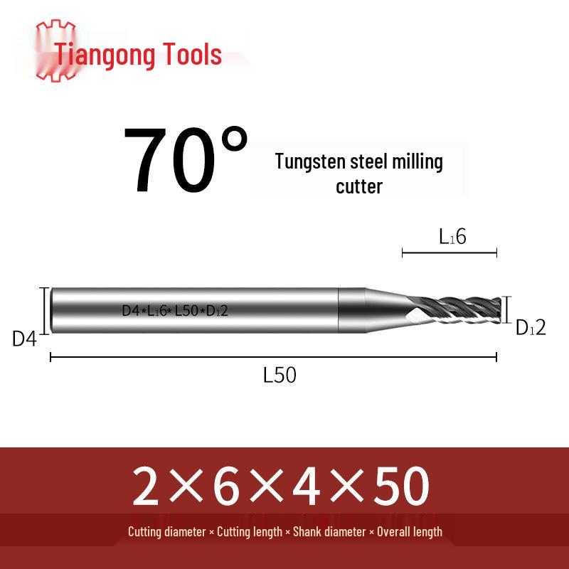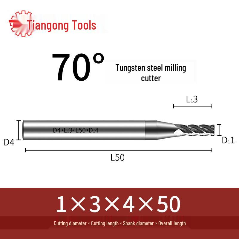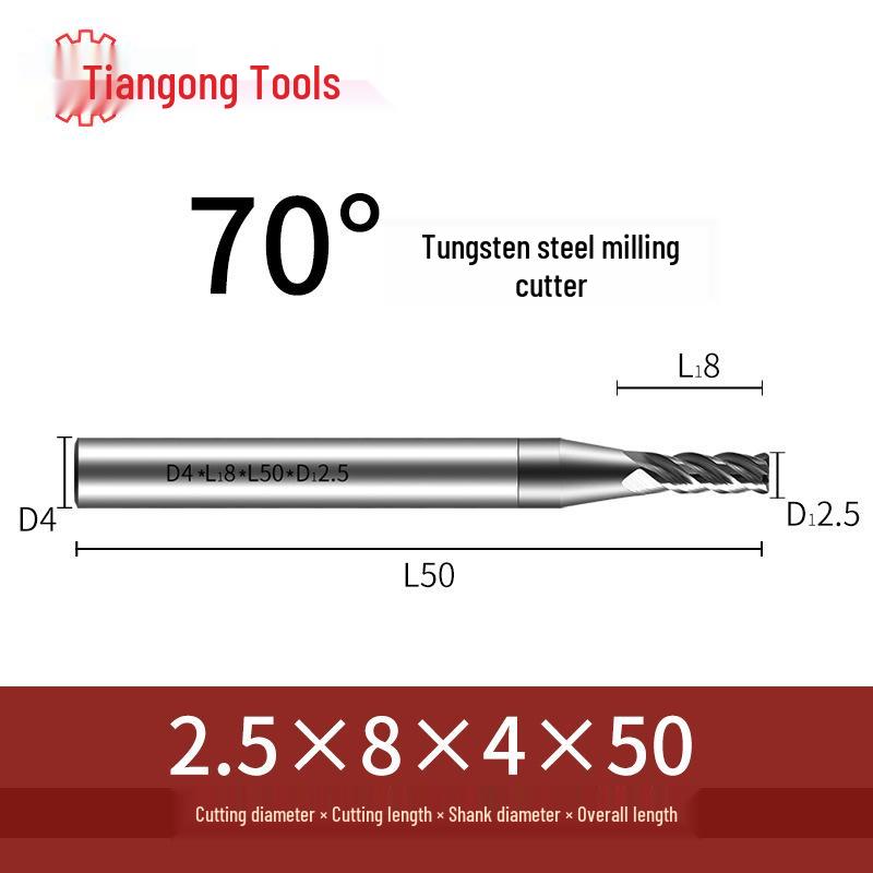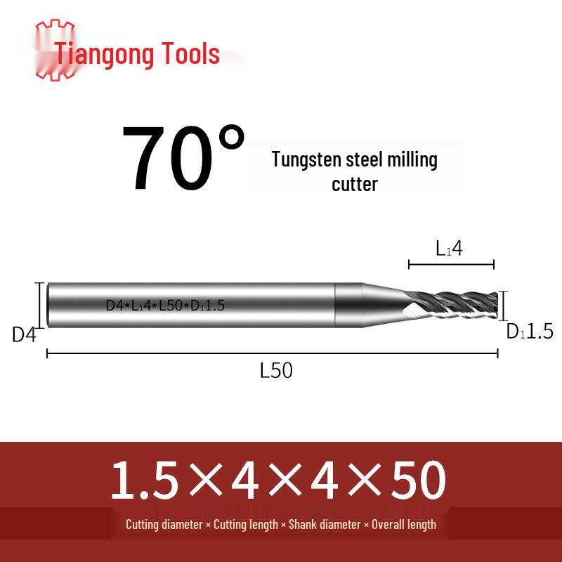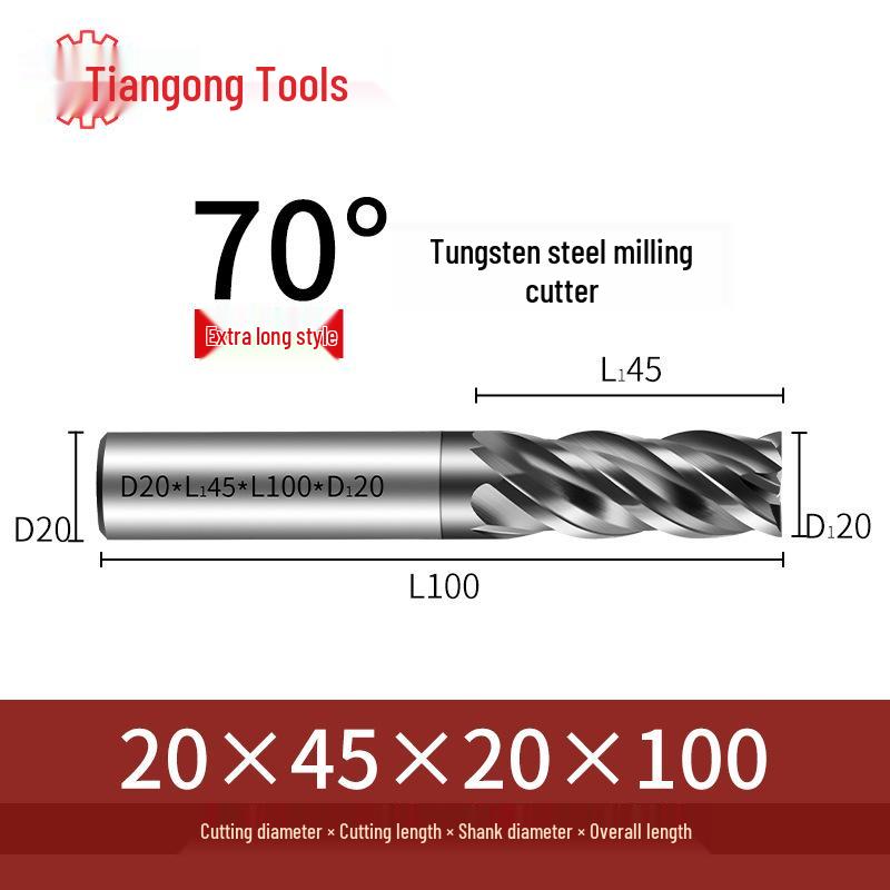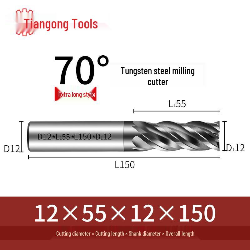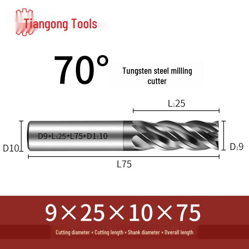 Tiangong 70° Твердосплавная концевая фреза с ЧПУ: Высокоточная, Виброустойчивая, Плоское дно, Четырехлезвийная фреза для нержавеющей стали.