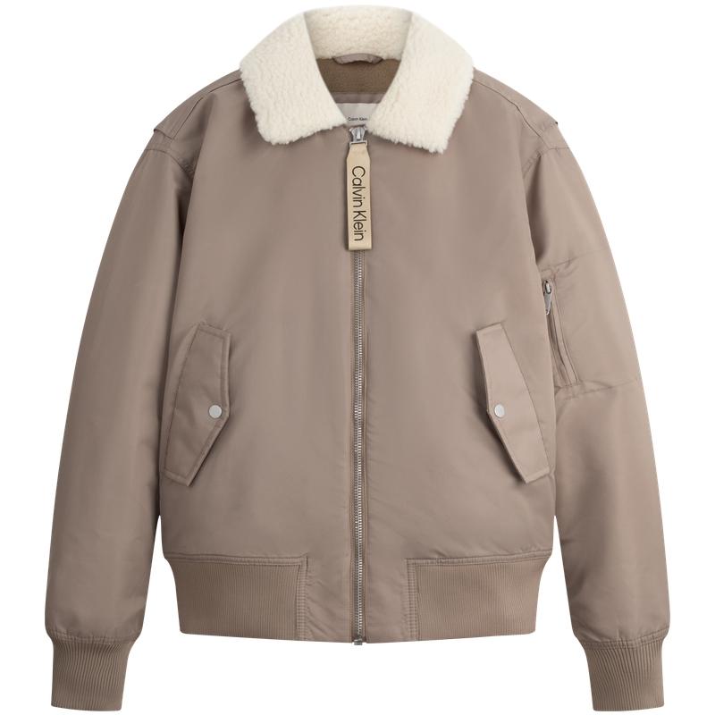 Calvin Klein Повседневная куртка Commuter Letter Woven Strap на молнии с флисовым воротником из хлопка Мужские куртки Earth-Brown J326108