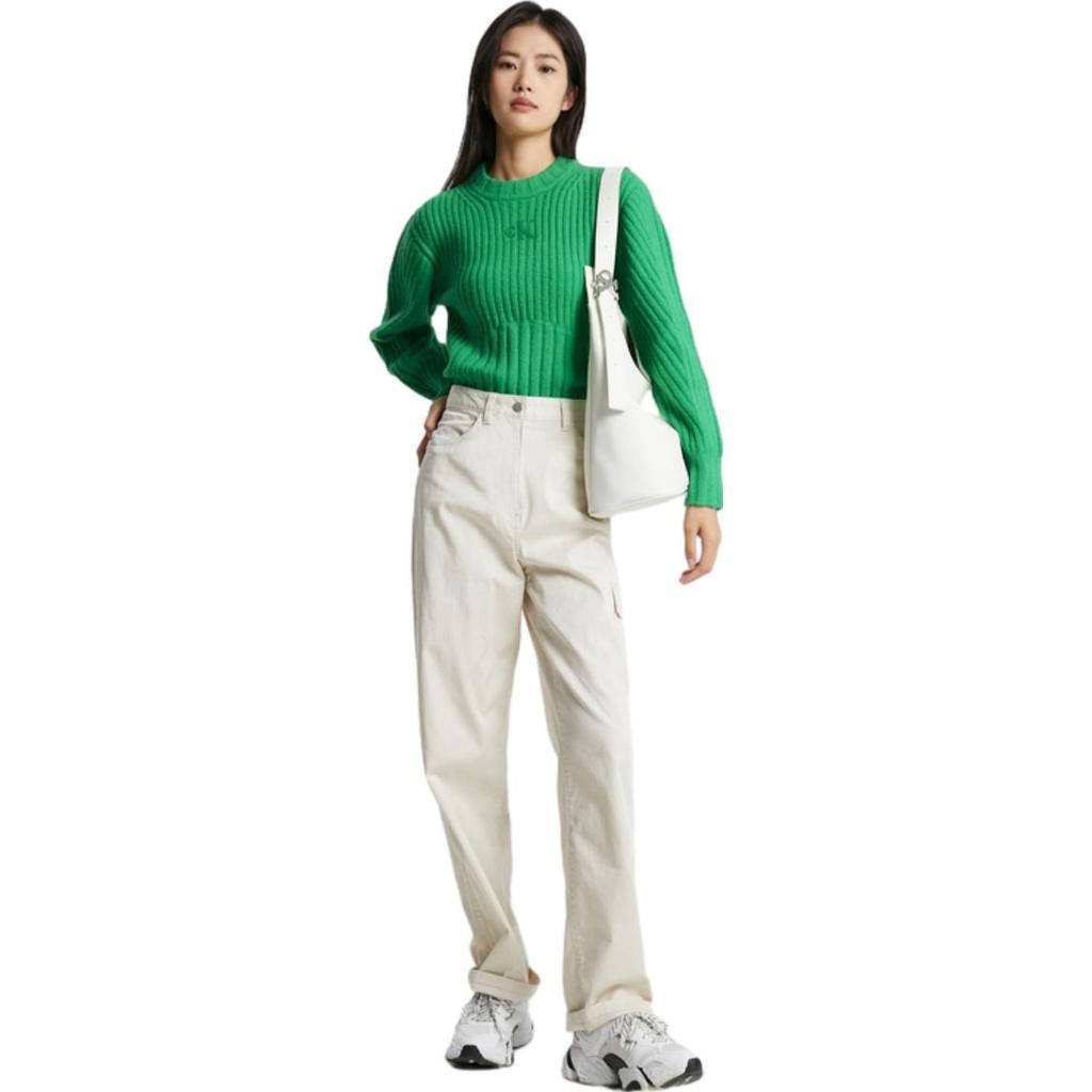 Calvin Klein Осень/Зима 23 Текстура букв Круглый вырез свитер женский свитер изумрудно-зеленый J222303