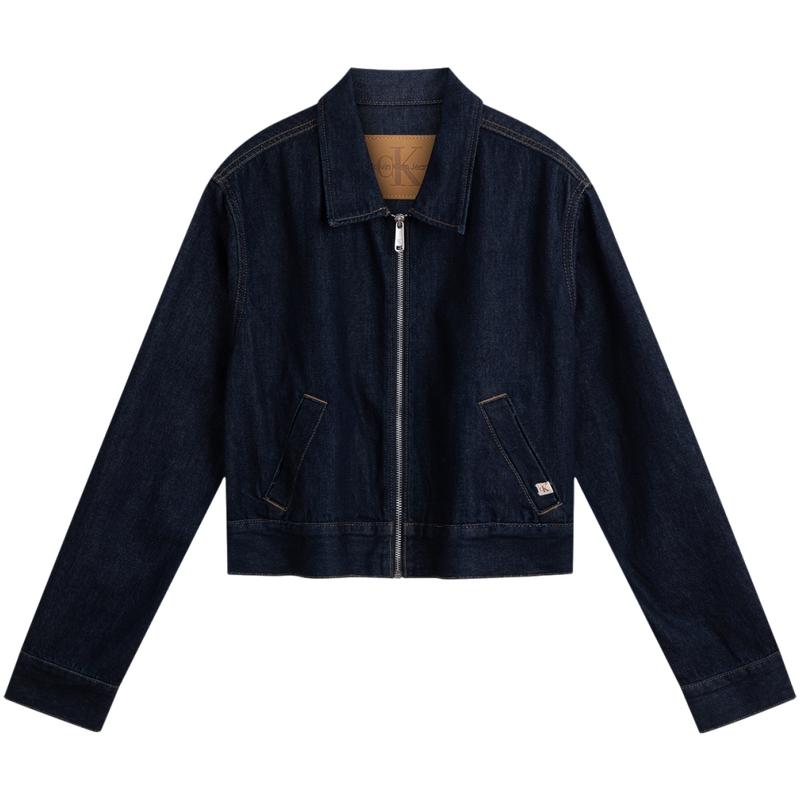 Calvin Klein Минималистская мягкая короткая джинсовая куртка с воротником-молнией, женские куртки темно-синего цвета J224382