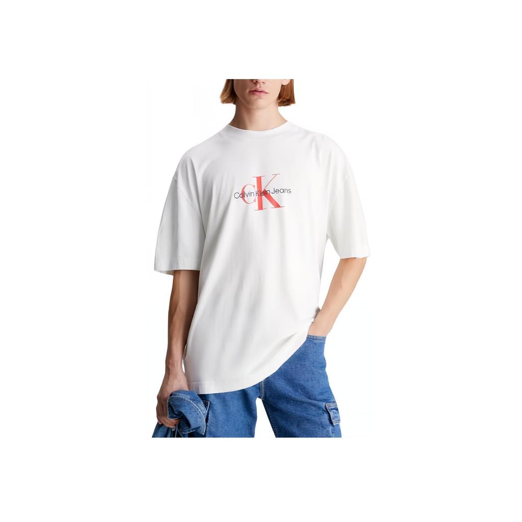 Calvin Klein Круглый вырез горловины с буквенным принтом, короткий рукав, футболка, мужские топы, белый цвет J30J325427-YAF