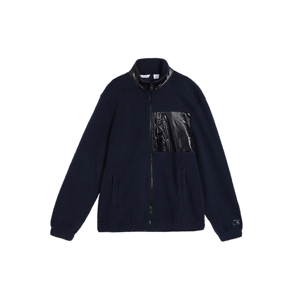 Calvin Klein Джинсы осень и зима с логотипом и жаккардовым воротником-стойкой, спущенными плечами, длинными рукавами, флисовая куртка унисекс, темно-синяя 40KC422-CEF