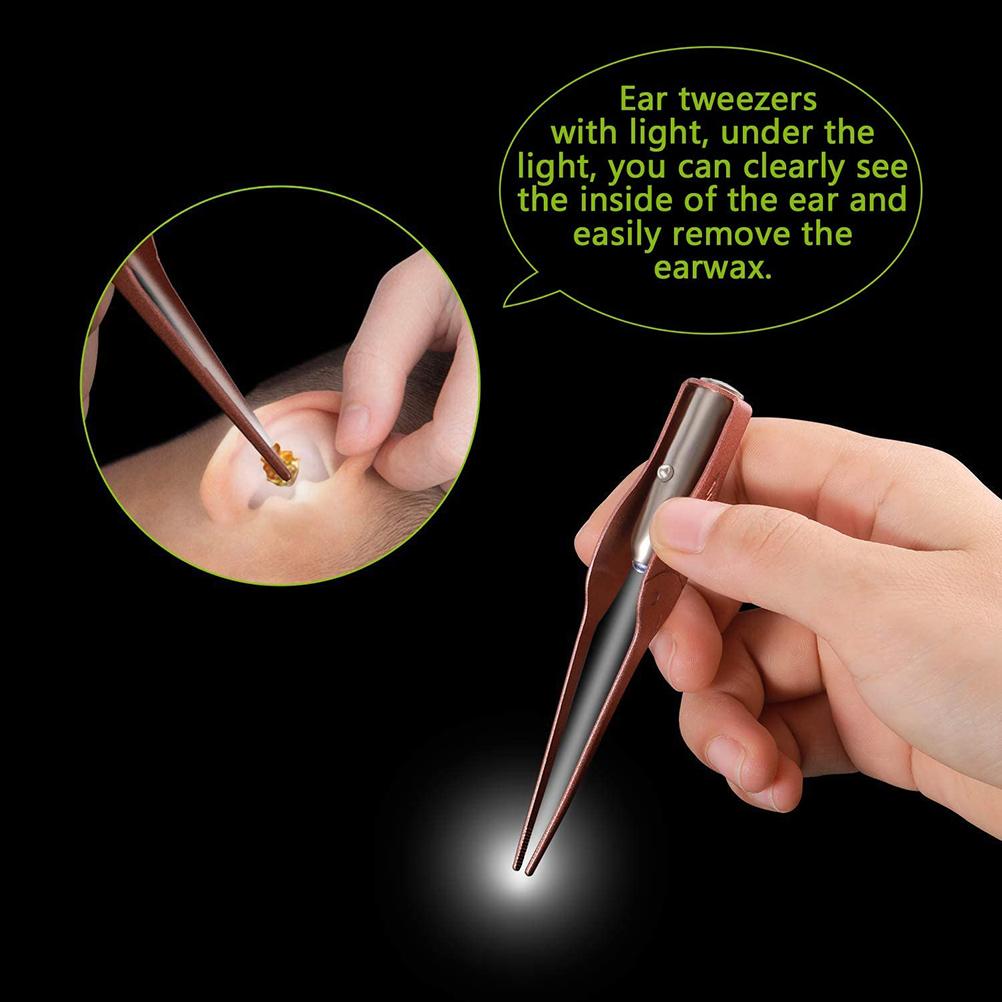 Светодиодный набор инструментов для чистки ушей, ушной пинцет, набор ухочисток с металлической коробкой для хранения, уход за ушами