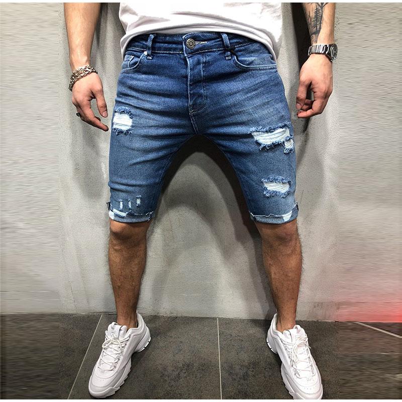 Мужская мода повседневные прямые рваные прямые флокированные джинсовые короткие брюки повседневные облегающие повседневные джоггеры средней талии однотонные джинсы