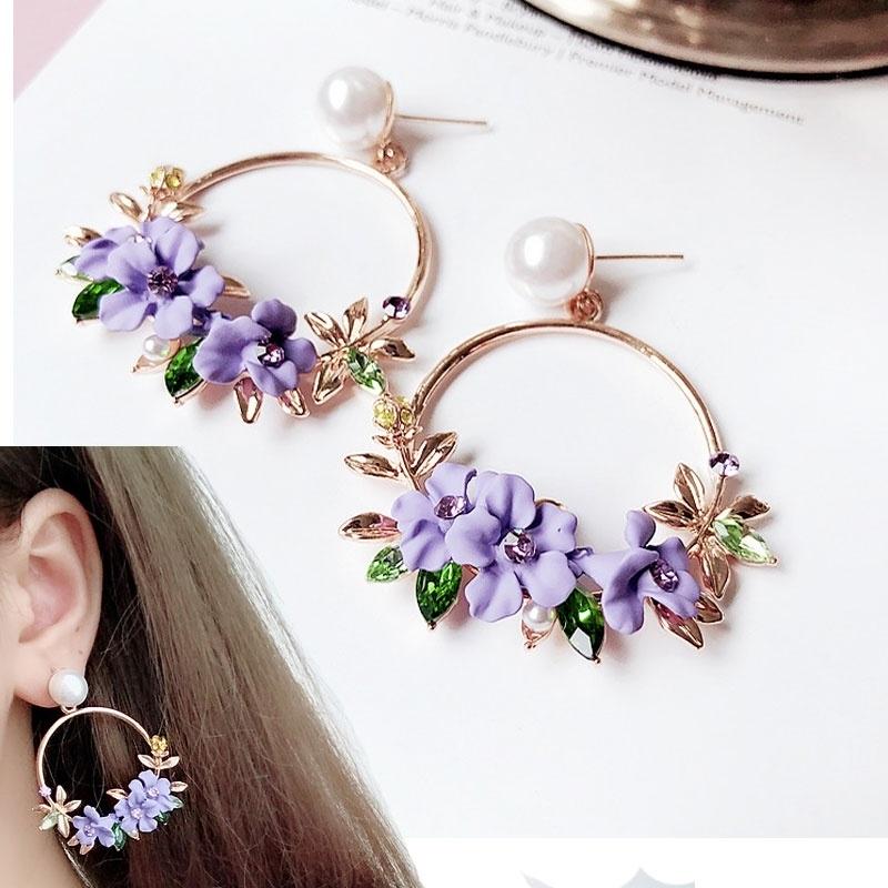 Новые элегантные большие круглые серьги с цветком для женщин, модные серьги с искусственным жемчугом и стразами