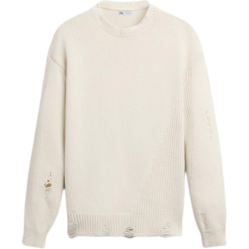 Zara Однотонный потертый круглый вырез с длинным рукавом вязаный свитер мужской свитер белый 3166401-712 — купить товар онлайн с бесплатной доставкой до всему миру!