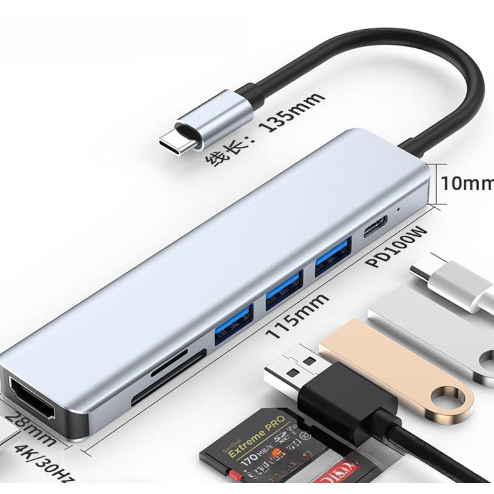 7 in 1 Type C Hub Dock for Huawei Apple iPad with HDMI USB SD Card Slot