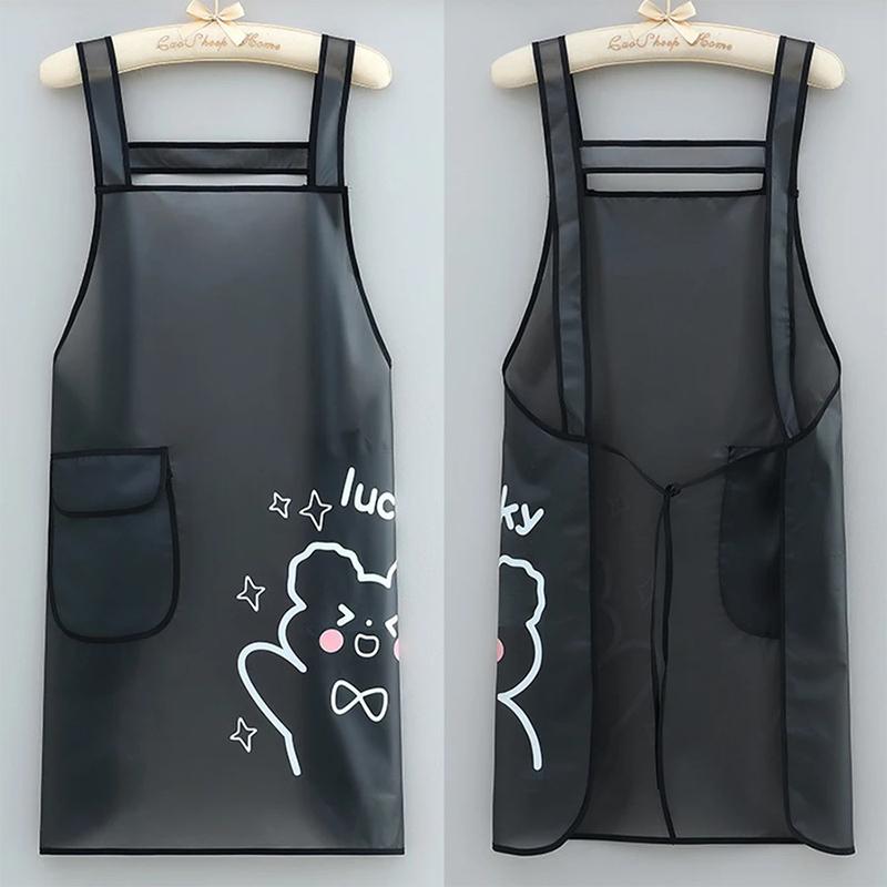 Водонепроницаемый кухонный фартук из ТПУ - Без рукавов, Маслостойкий, Легкий, Подходит для приготовления пищи и уборки, Милый медведь, Простой стиль