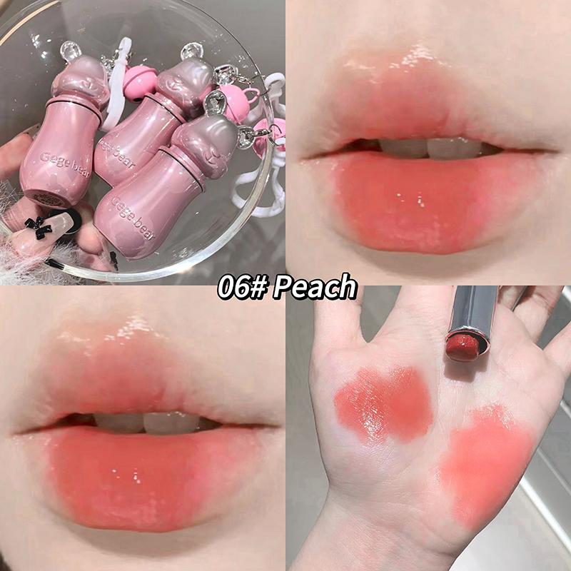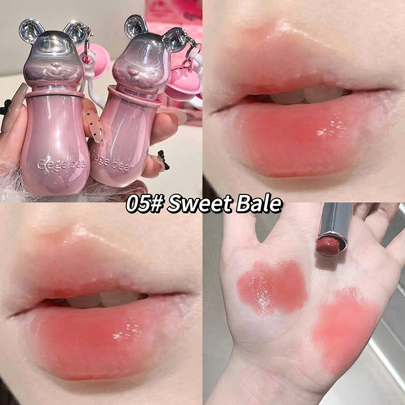 Сладкий кулон-мишка Помада Gege Bear Зеркальные текстуры Матовый цвет Водянистая увлажняющая Милая черно-розовая упаковка
