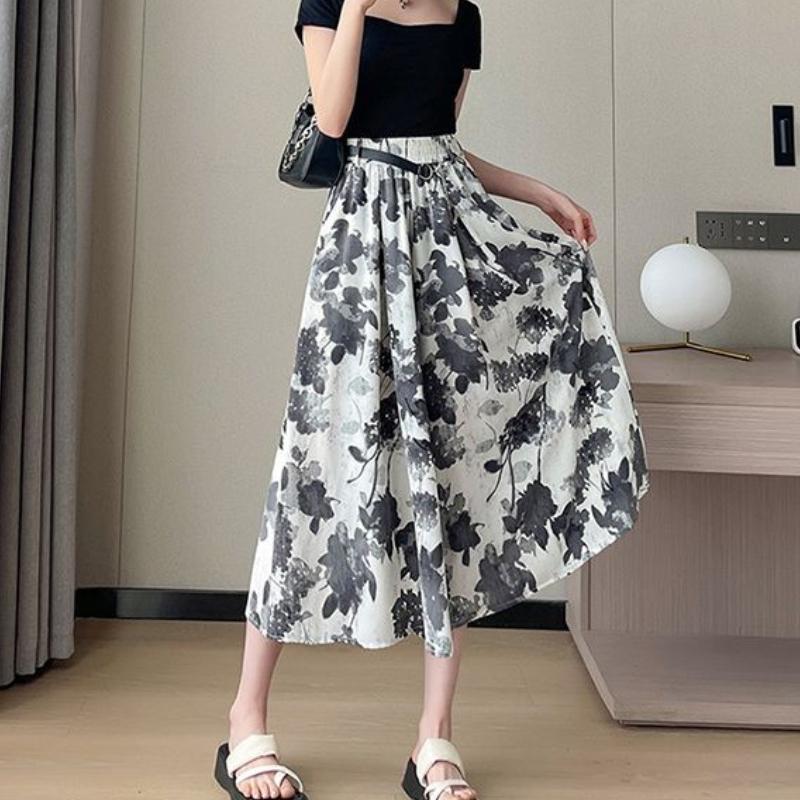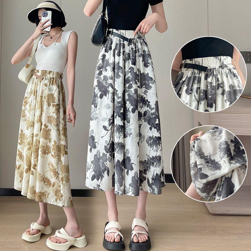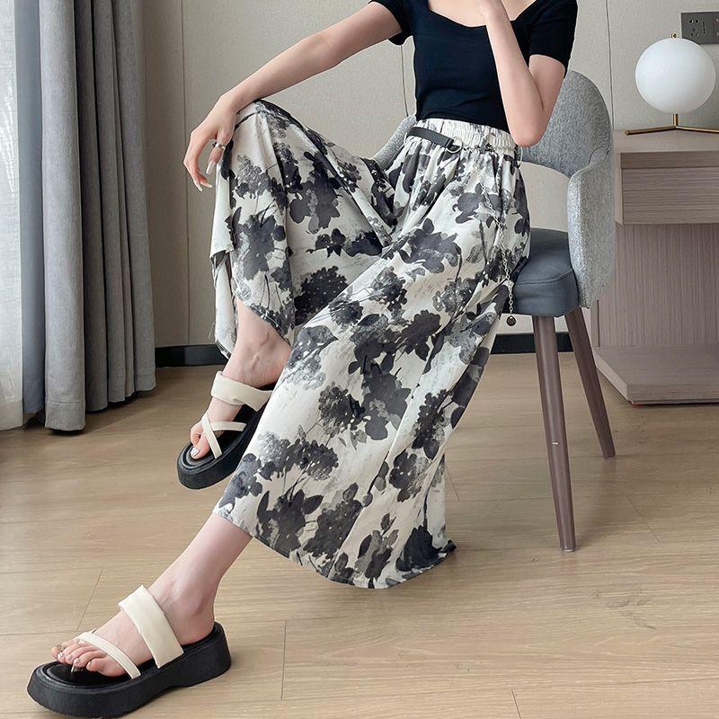 Летняя шифоновая юбка-брюки, тонкие широкие брюки с рисунком тушью, свободные брюки с узором «семь точек» в корейском стиле с эффектом драпировки