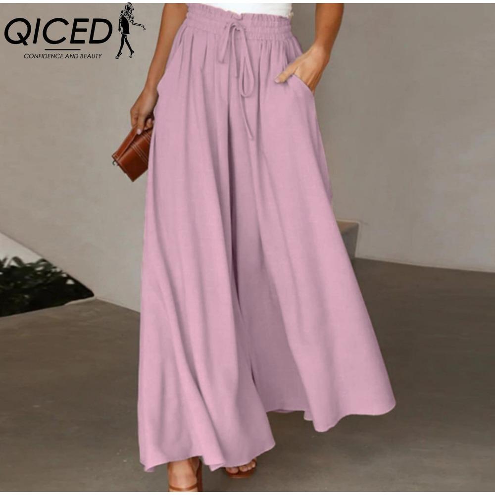 QICED Женские модные повседневные однотонные брюки и капри с принтом