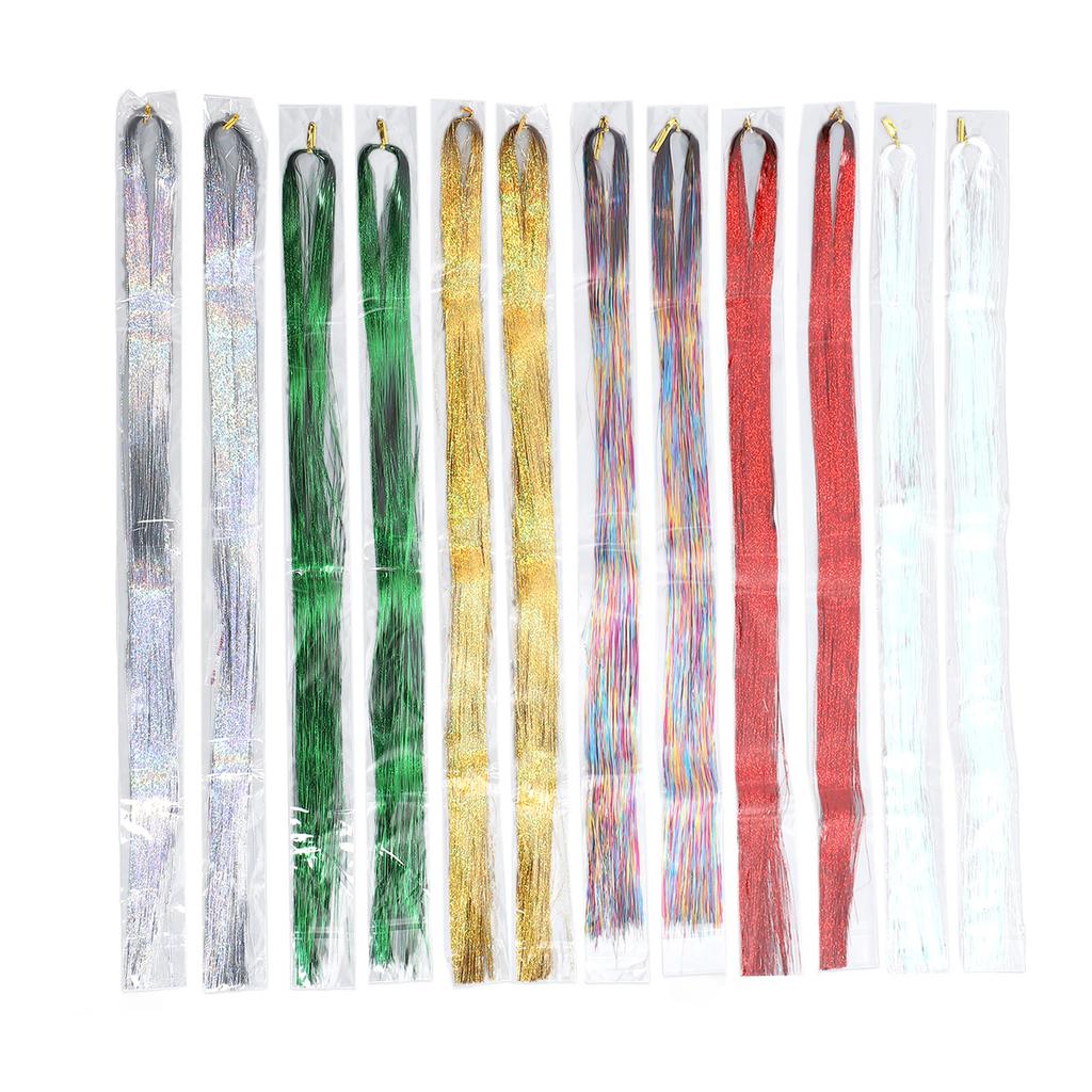 Набор мишуры для волос 12 шт. цветные блестящие пряди для наращивания волос с крючком и плоскогубцами