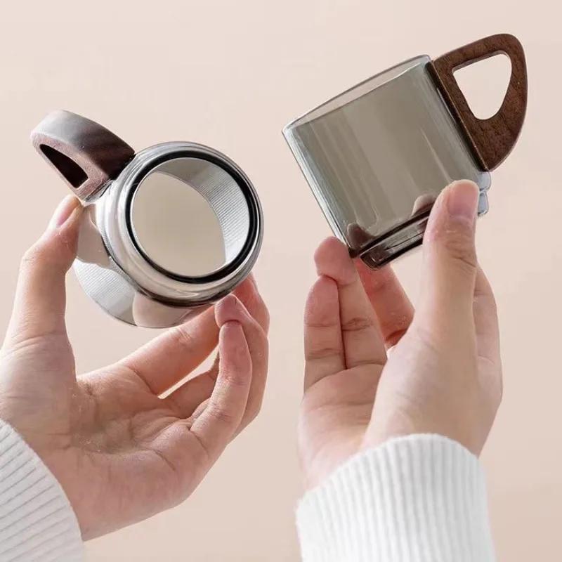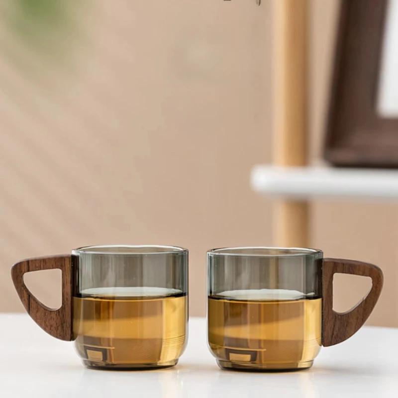 Маленькие стеклянные чайные чашки, чайные чашки с ручками, красное дерево, анти-глажка, роскошные и высококачественные прозрачные чашки для воды, домашний офис
