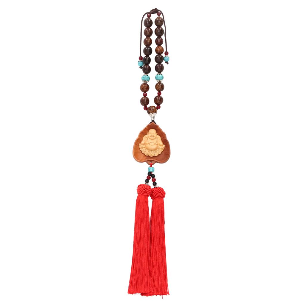 Буддийский автомобильный кулон с двойной кисточкой, дизайн из самшита, декор Будды, безопасный, благоприятный кулон для автомобилей