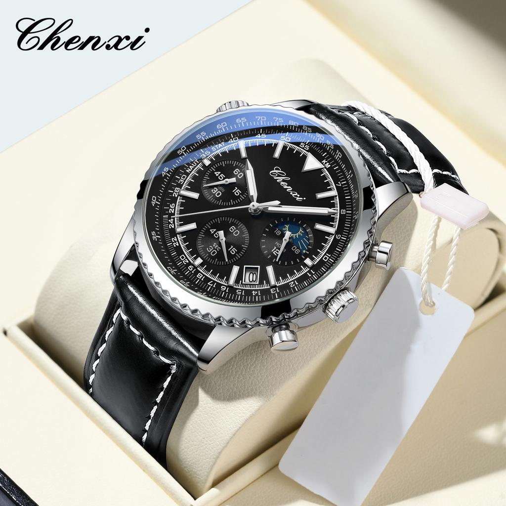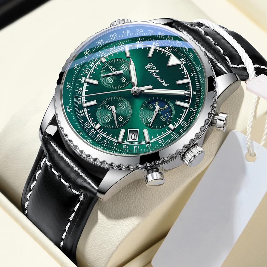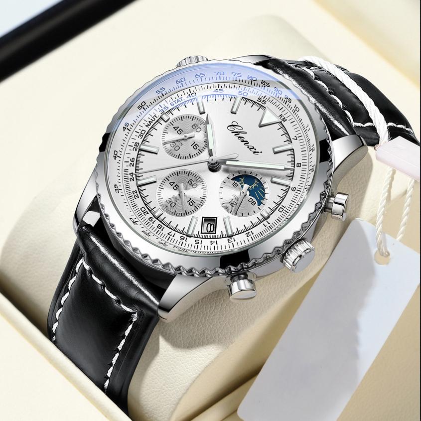 Мужские деловые спортивные календарные многофункциональные светящиеся часы мужские кварцевые хронографы модные кожаные наручные часы для мужчин