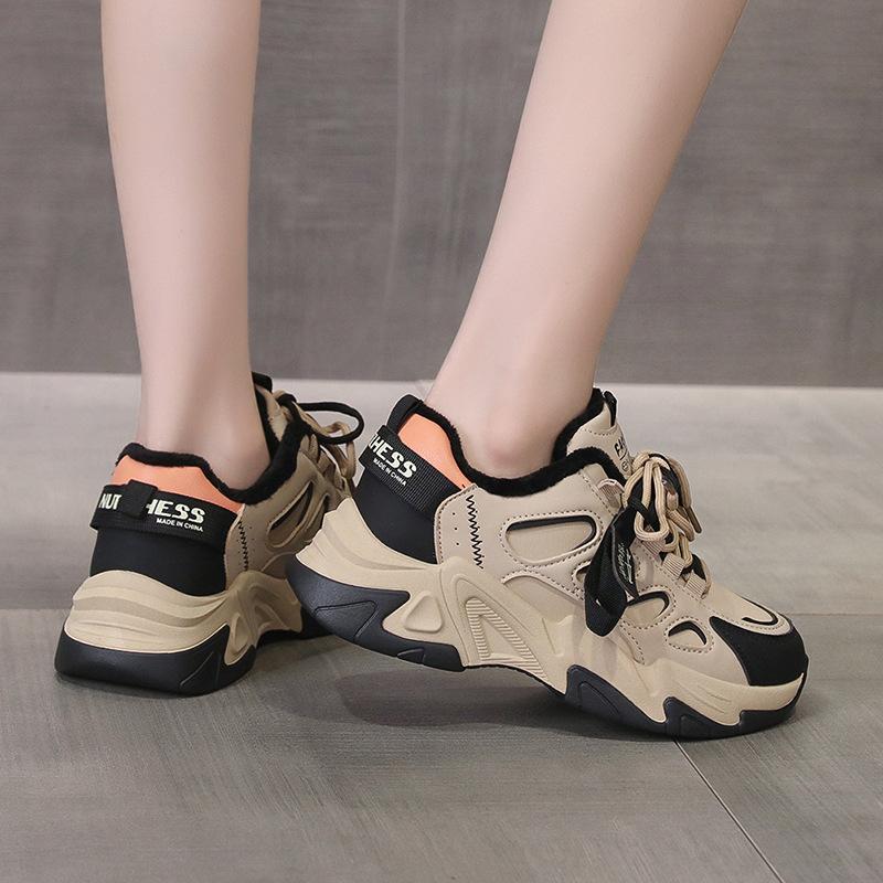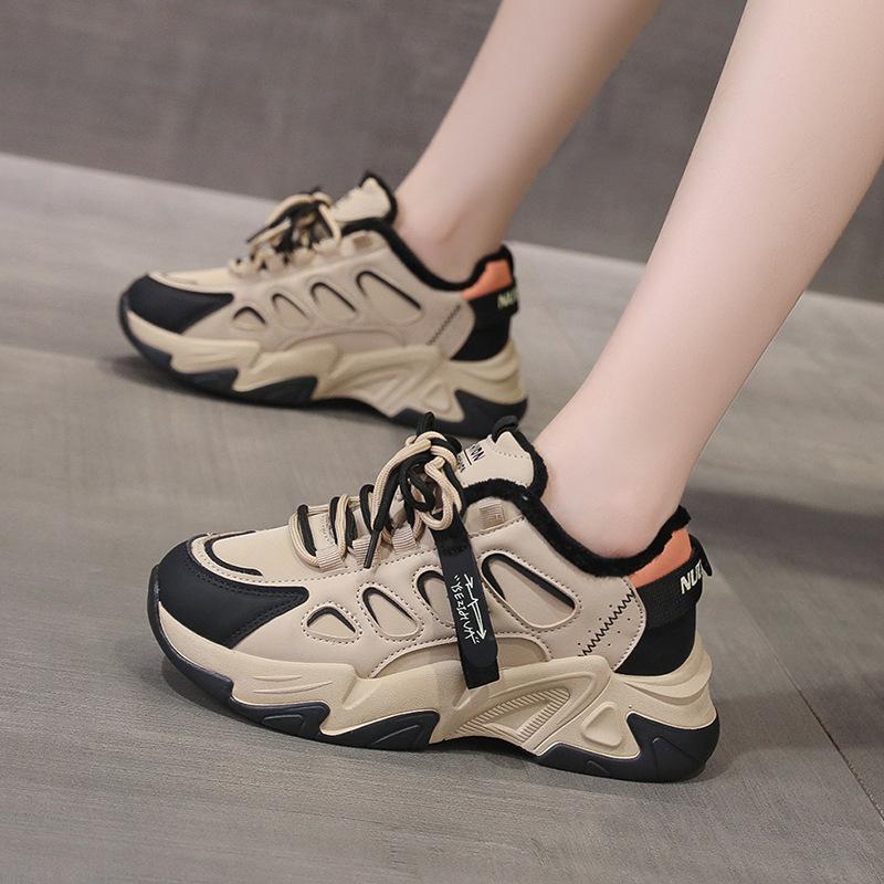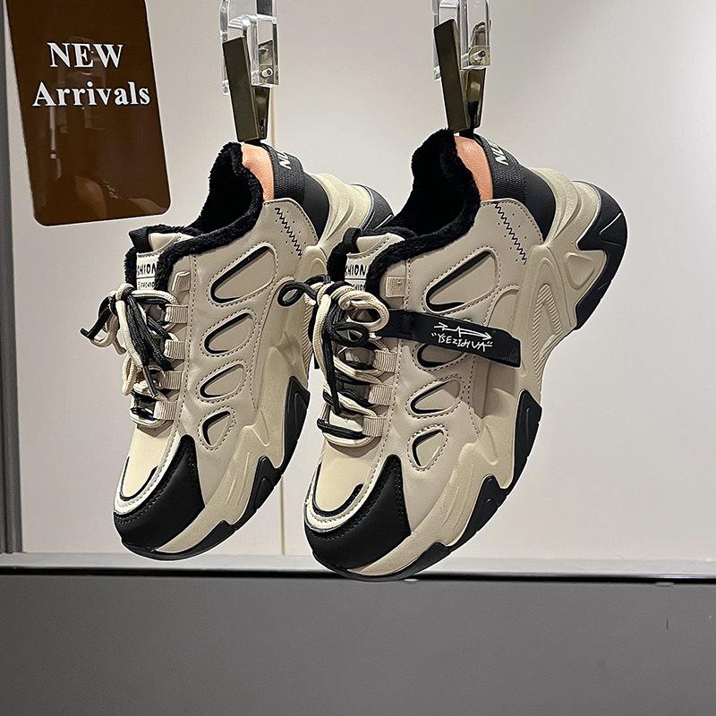 Platform dad shoes 2025 new models show feet small autumn and winter new models velvet versatile sports casual retro running shoes women