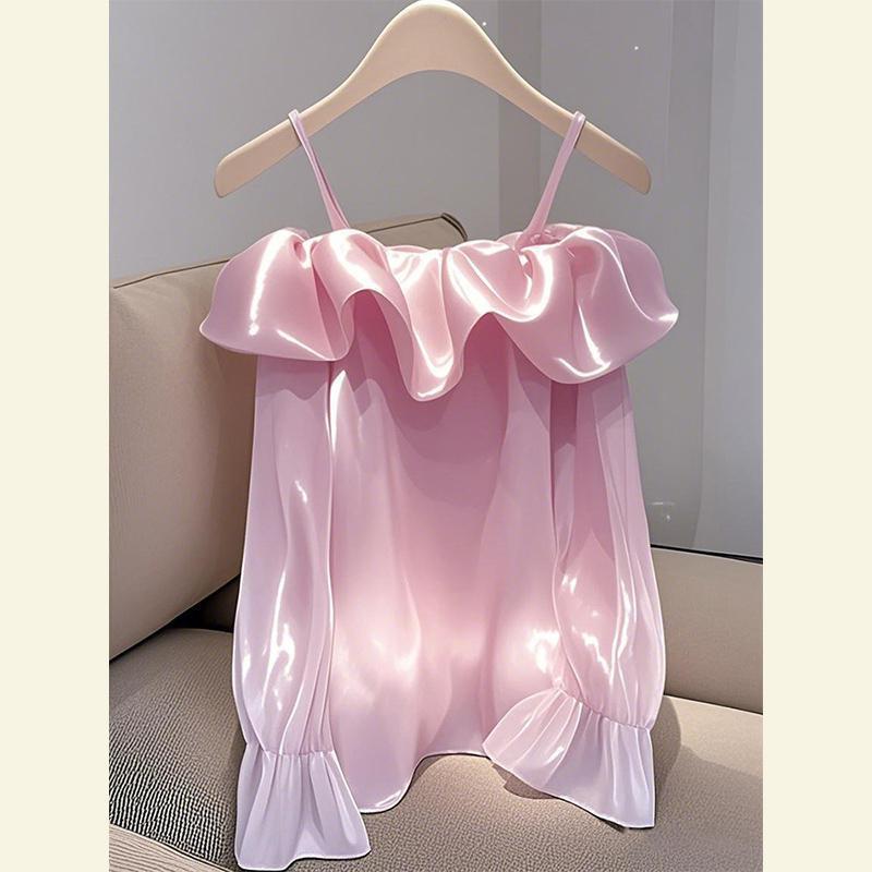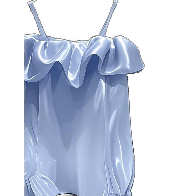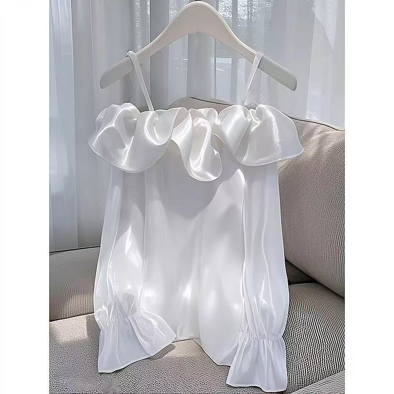 Атласная блузка во французском стиле - Женский топ с оборками и открытыми плечами