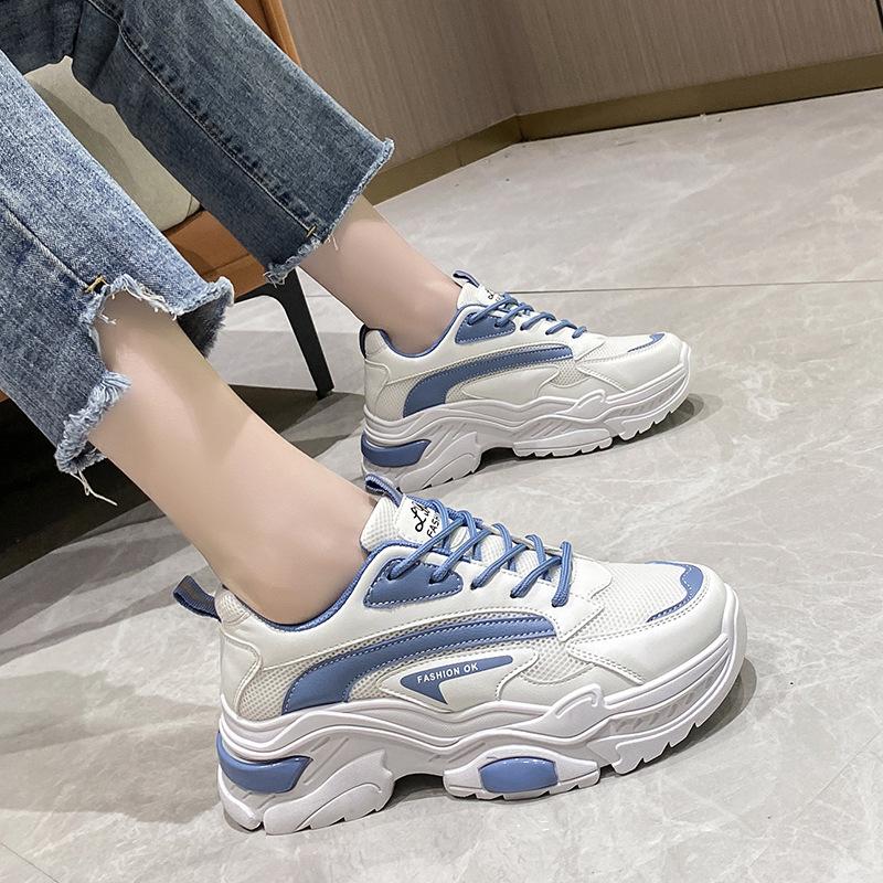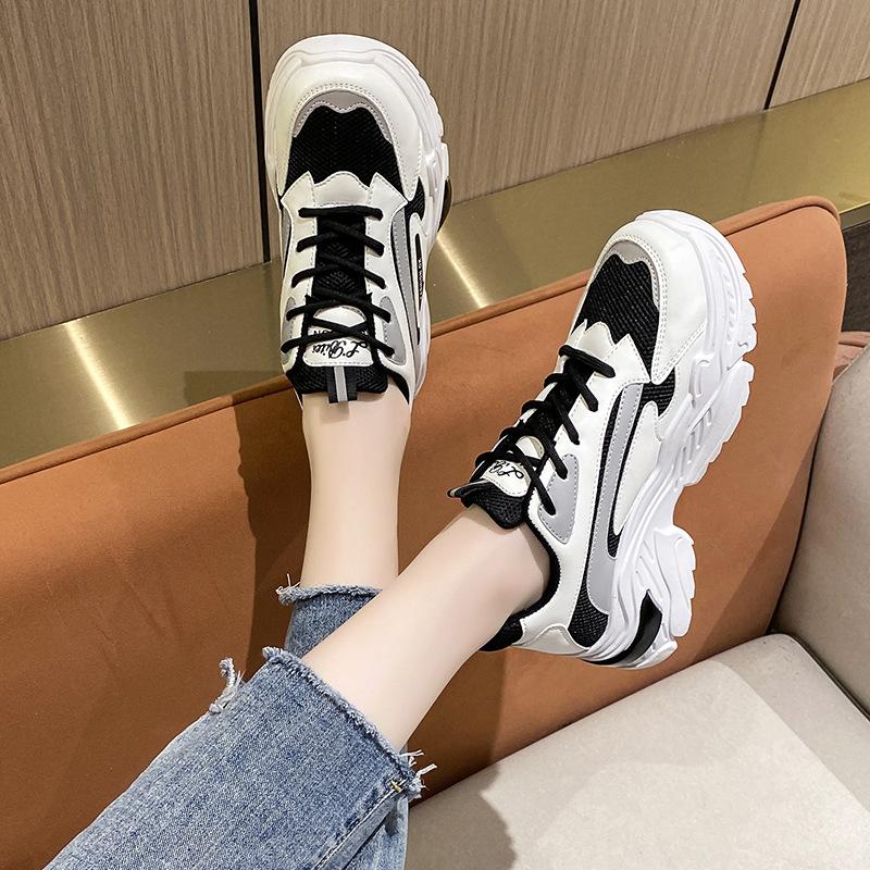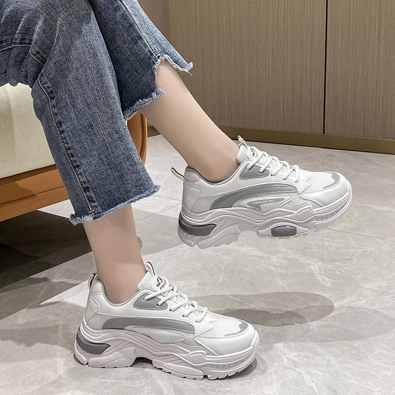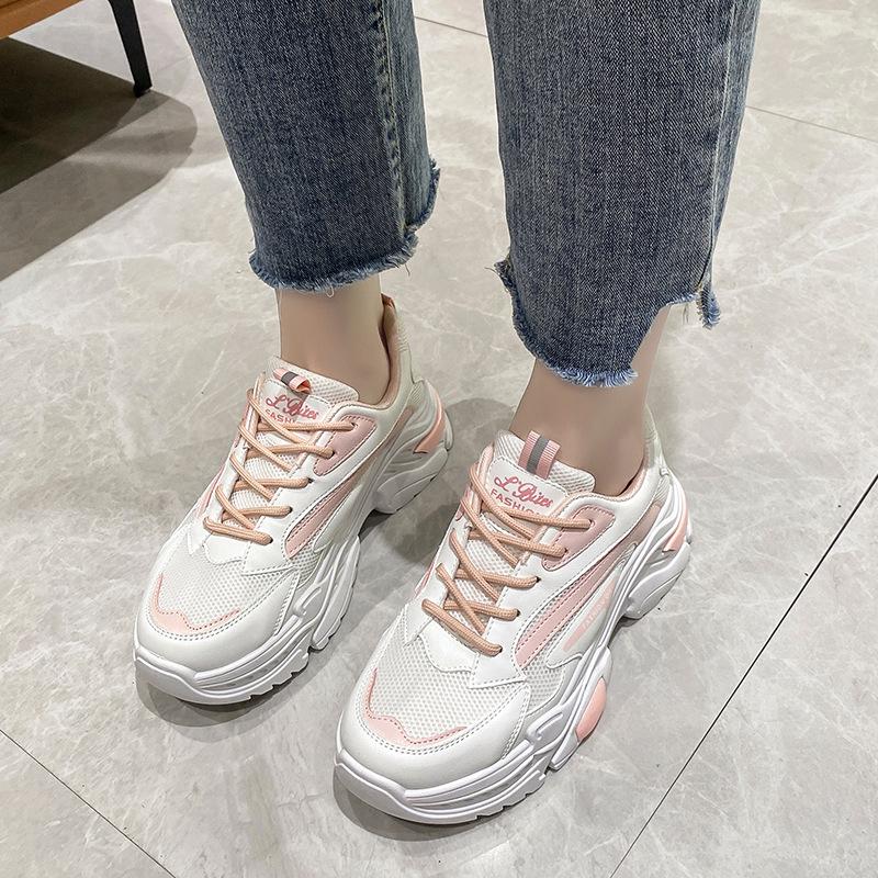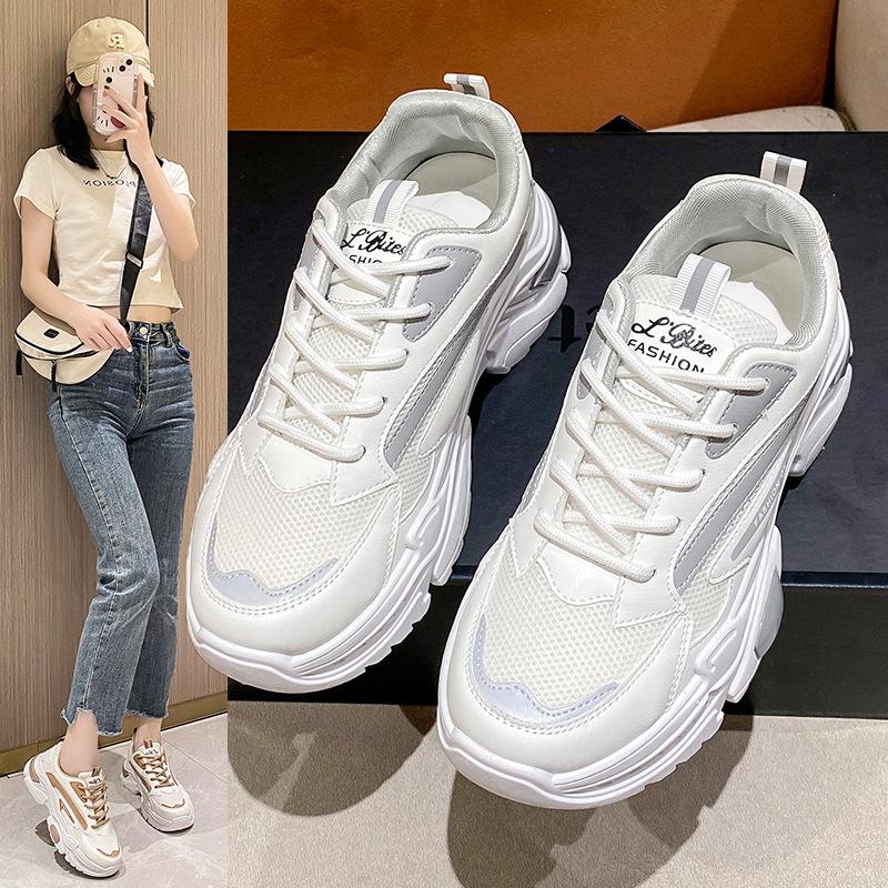 Сетчатая обувь женская 2025 лето новая дышащая удобная модная корейская версия кроссовки папины кроссовки платформа маффин повседневная обувь