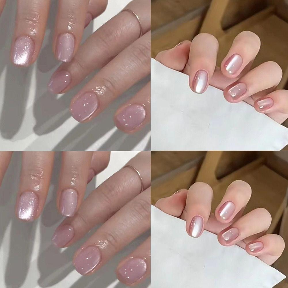 Короткие круглые накладные ногти розовые кошачий глаз кончики ногтей съемные накладные ногти для салона