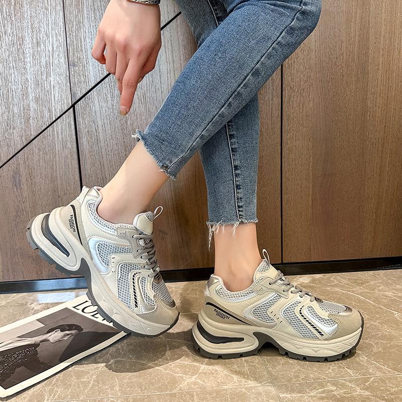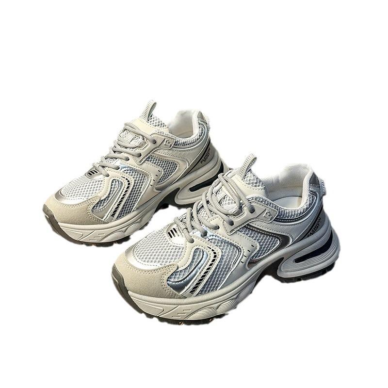 2025 новые маленькие сетчатые спортивные туфли серебристо-серого цвета, универсальные кроссовки для папы, женские повседневные дышащие кроссовки интернет-знаменитости для бега