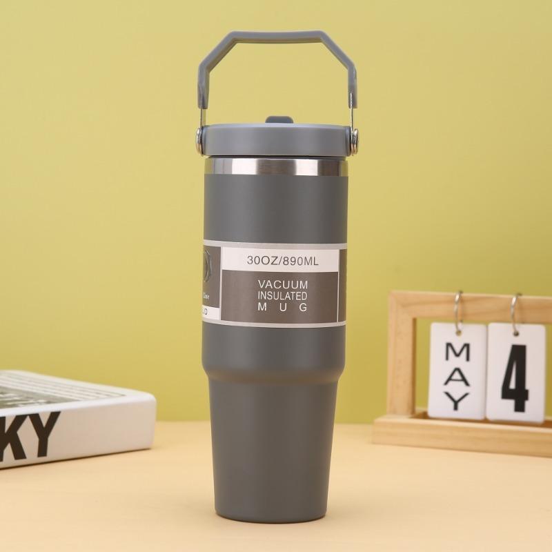 Портативная автомобильная кружка-термос из нержавеющей стали с трубочкой и ручкой, двухстенная дорожная спортивная бутылка для воды, термос для кофе