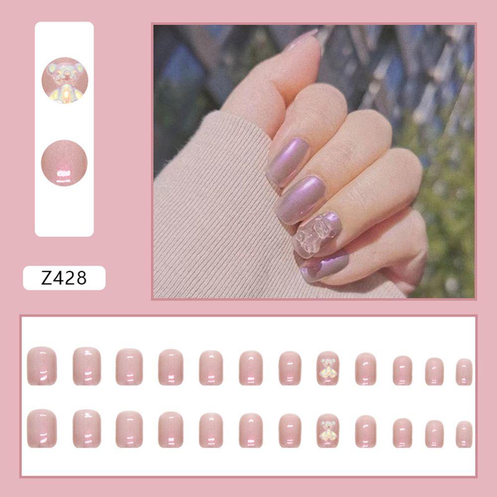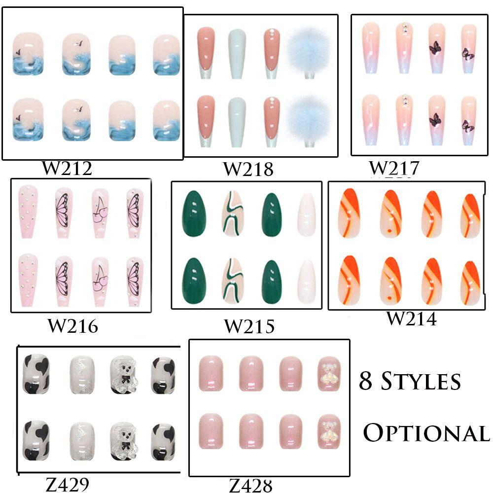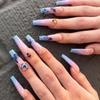 24 шт., накладные ногти, бабочка, медведь, синий меховой шарик, накладные ногти, синие волны, полное покрытие, накладные ногти