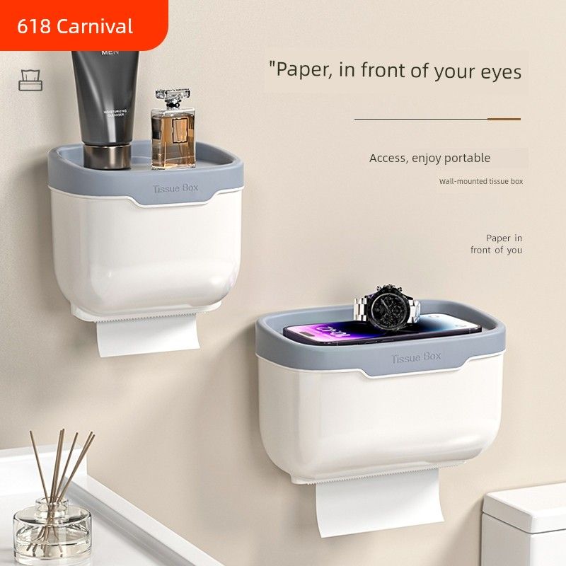 Punch-Free Toilet Tissue Box Toilet Waterproof Towel Rack Storage Rack Paper Extraction Box Wall Hanging Chart Drum