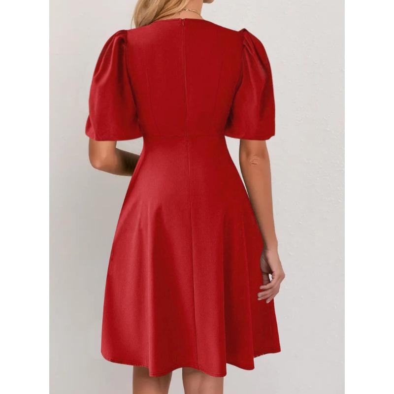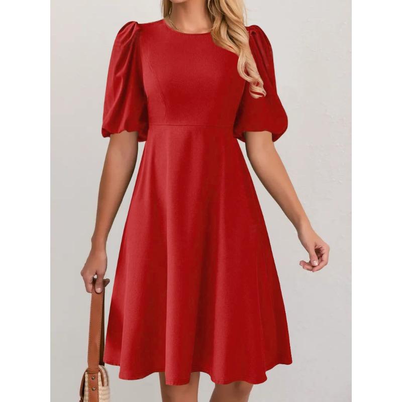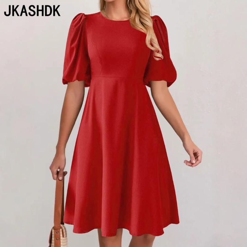 JKASHDK Женская мода лето весна однотонный принт с коротким рукавом и круглым вырезом с высокой талией повседневные платья