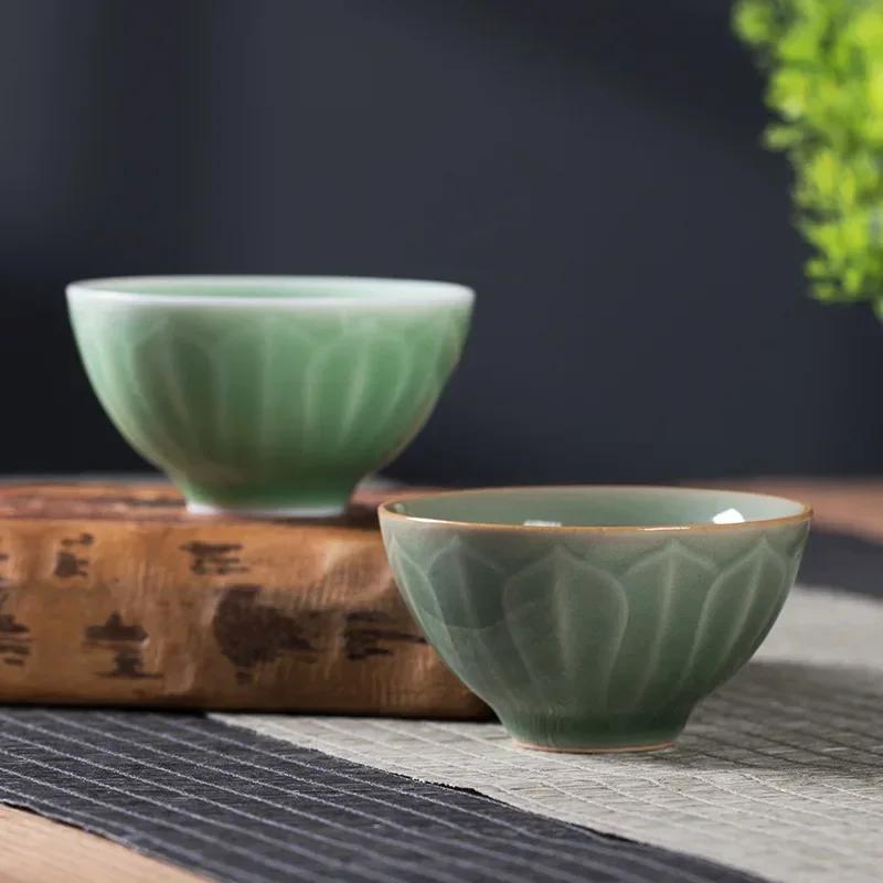 Чашки Celadon-Raw Ore Antique Lotus Leaf Single, керамическая креативная чашка для чая Kung Fu, китайский стиль, ретро-кружка Master, зеленая, 50 мл