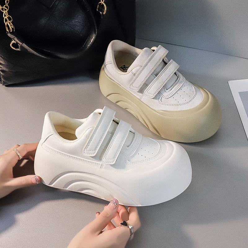 Весенняя женская обувь новая липучка большая голова белые туфли женские толстая подошва увеличивает 2025 женская обувь новая универсальная повседневная обувь