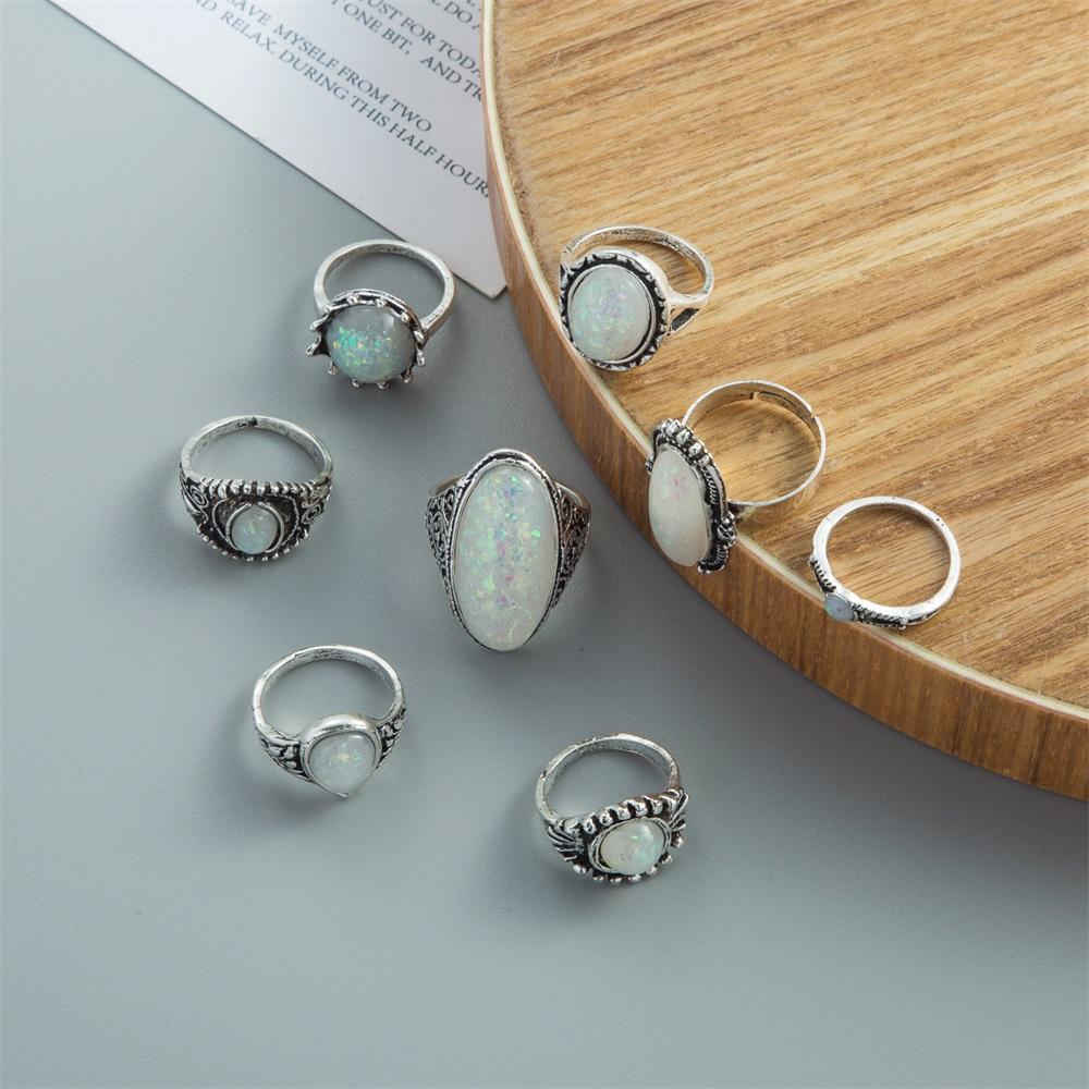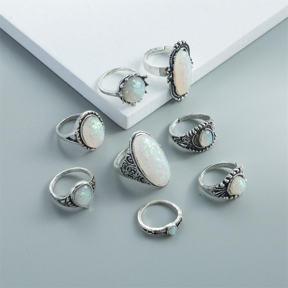 Овальное кольцо в стиле ретро, набор колец с геометрическим рисунком из 8 предметов, простое кольцо, популярные женские украшения