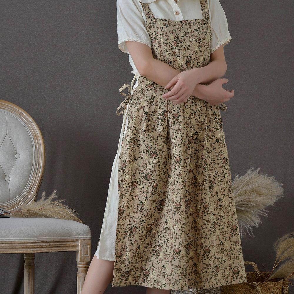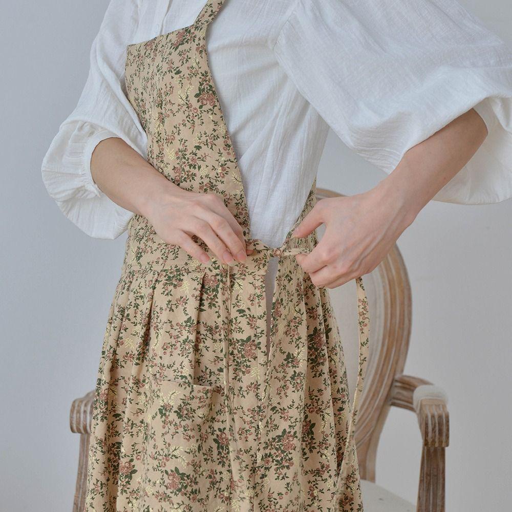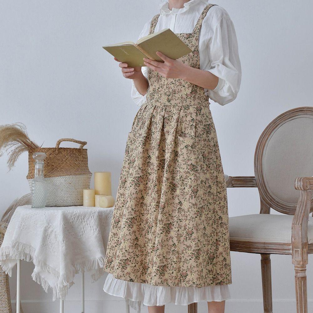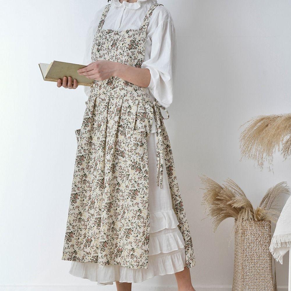 Цветочный принт фартук для работы по дому хлопковый фартук для уборки кухонный фартук для приготовления пищи кофейный фартук