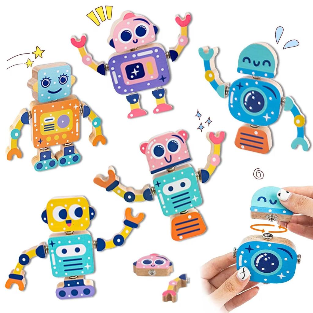 🚀Безграничное творчество без стандартов🎨 - Эта деревянная игрушка-робот для сборки не имеет стандартных ответов, и дети могут свободно собрать 5 роботов. В комплекте 10 механических рук, 8 ног и 5 частей тела, которые можно свободно комбинировать, чтобы стимулировать детское творчество и воображение.. 🔧Легкая сборка, легко для детей в управлении🧸 - Шаги сборки игрушки очень просты, просто поверните кнопку, чтобы собрать ее. Детали прочно сконструированы и нелегко отваливаются, поэтому дети могут легко освоить сборку и развить свою ручную ловкость и уверенность в себе.. 🤖Суставы свободно двигаются, различные позы🌀 - Суставы робота могут вращаться и свободно двигаться, позволяя детям принимать различные позы. Эта гибкость увеличивает удовольствие от игры и помогает развивать координацию рук и глаз и пространственное восприятие.. 🧠Тренируйте всесторонние способности🎯 - Играя с этим сборочным роботом, дети могут тренировать координацию рук и глаз, распознавание цветов, логическое мышление и ручную ловкость.. Процесс строительства и созидания улучшит ваши общие способности и сделает обучение увлекательным и эффективным.. 🌳Безопасный и экологичный, идеальный подарок🎁 - Эта игрушка
