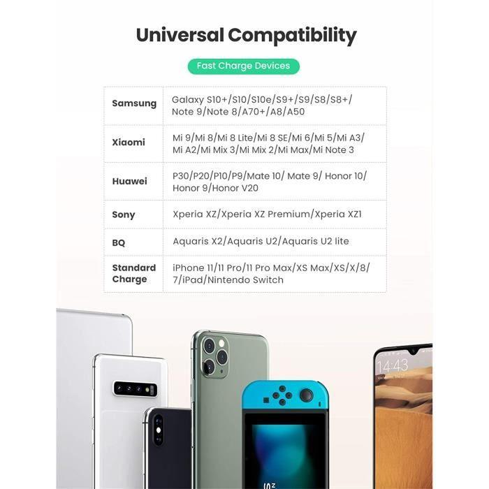 Chargeur rapide - UGREEN - Quick Charge 3.0 - 18W - USB - Noir