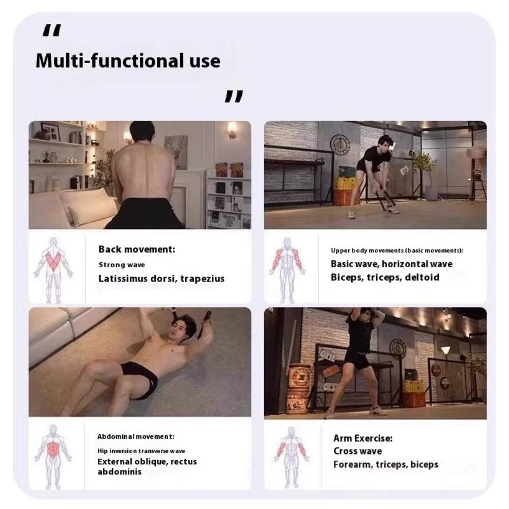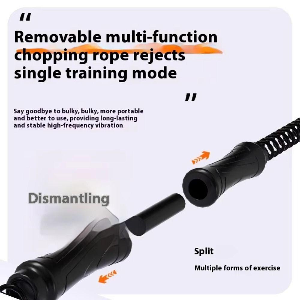 2. Имитация оригинального действия боевого каната и улучшение тренировочного эффекта: Эта беспроводная боевая веревка разработана для имитации традиционного действия боевой веревки.. Даже без длинной веревочной структуры традиционного боевого каната, он все равно может воспроизводить классические волны, взмахи и другие тренировочные движения с боевым канатом за счет силы отскока и прочности пружины, помогая пользователям эффективно тренировать основные мышцы, руки, плечи и ноги.