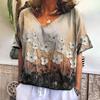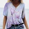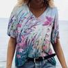 3D Art Print Tops Свободные футболки с коротким рукавом Летняя уличная мода Повседневные свободные женские футболки с V-образным вырезом Женская одежда