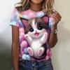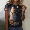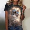 Футболка с милым рисунком кошки 3D-принтом, женская модная футболка большого размера с круглым вырезом и коротким рукавом, футболки, футболка Kawaii, футболка с изображением животных