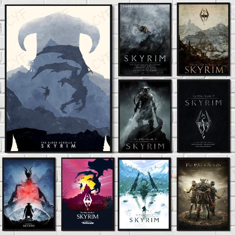 S-Скайрим Постер The Elder S-Scrolls V HD арт липкий на стену водонепроницаемый дом гостиная спальня бар эстетичное украшение — купить товар онлайн с бесплатной доставкой по всему миру!