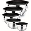 Набор из 5 мисок из нержавеющей стали, складывающихся одна в другую - Кухонные принадлежности для выпечки, сервировки, можно мыть в посудомоечной машине и легко хранить