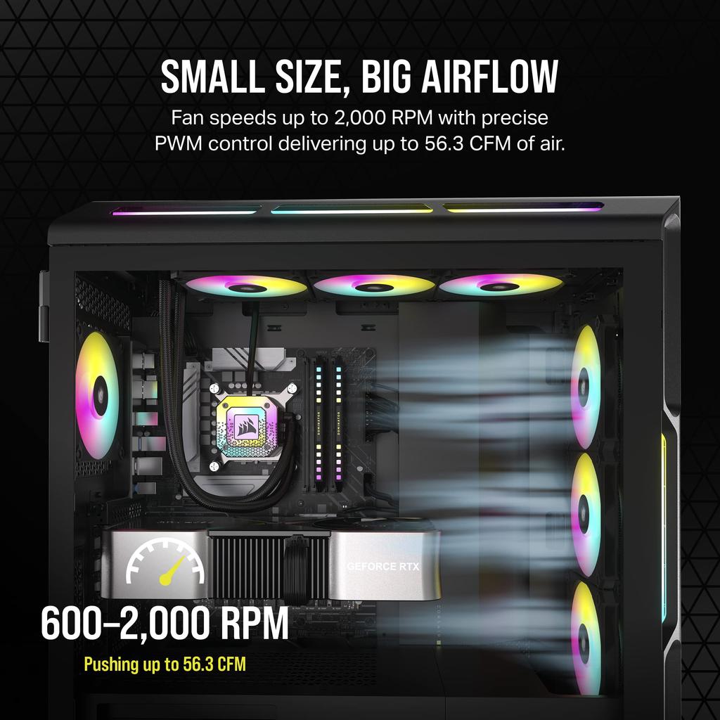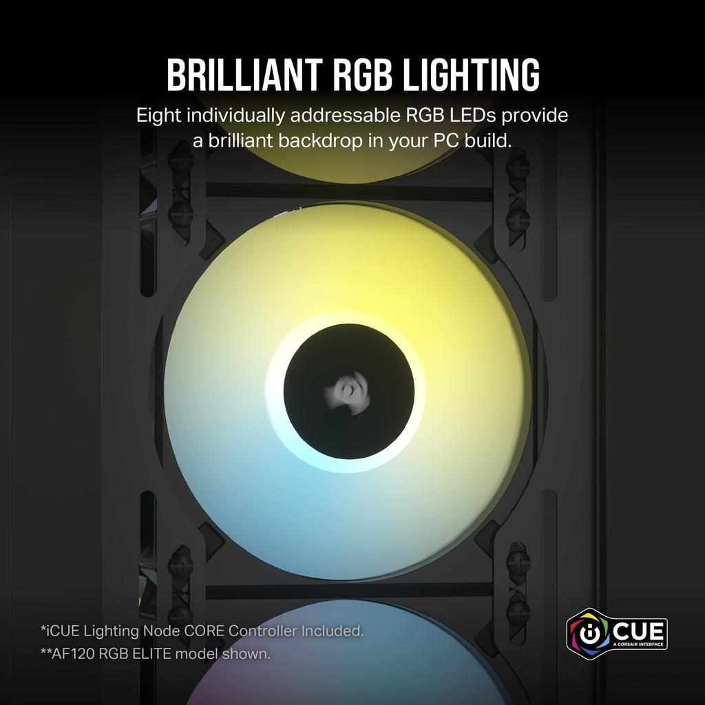 CORSAIR AF SLIM AF120 RGB 120мм x 15мм Вентилятор с гидродинамическим подшипником RGB Подсветка Node CORE Series, SLIM, [Черный] [2 шт. в комплекте] CO-9050163-WW