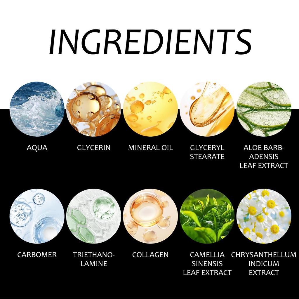 Минеральное масло известно своими превосходными герметизирующими свойствами, оно может образовывать тонкую и плотную защитную пленку на поверхности кожи, уменьшая испарение воды.. Эта защитная пленка не только удерживает первоначальную влагу в коже, но и защищает ее от вредных веществ из внешней среды, создавая безопасную и стабильную микросреду для кожи.. Благодаря синергетическому воздействию глицерина и минерального масла коллагеновый укрепляющий крем для тела способен реализовать эффект глубокого увлажнения кожи, значительно повысить содержание влаги в коже, благодаря чему она может попрощаться с сухостью и шероховатостью и вновь обрести мягкость и гладкость.